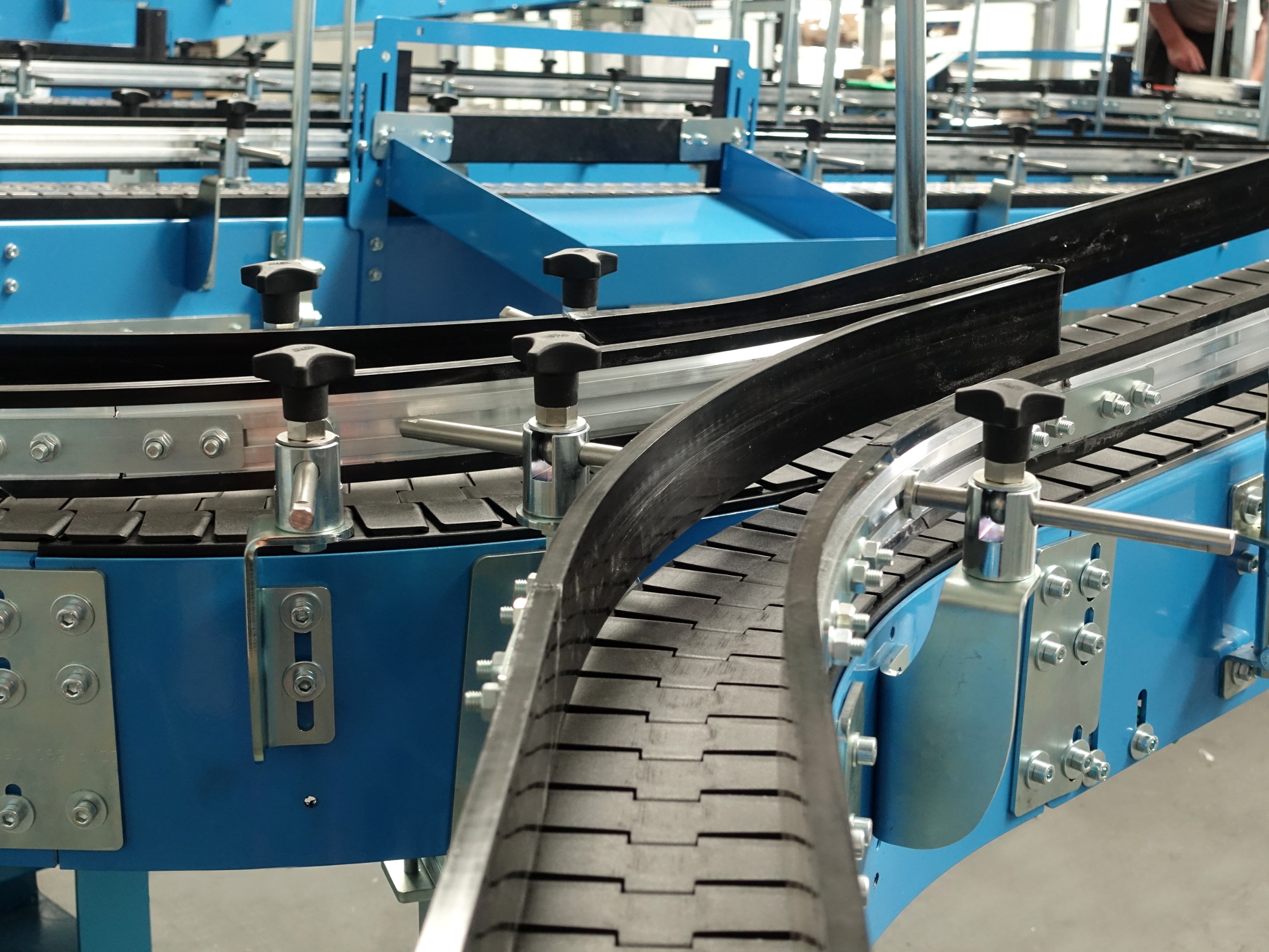 Wir laden Sie ein, sich mit dem umfassenden Angebot an Förderbändern vertraut zu machen, die den internen Transport im Produktionsprozess von Glasverpackungen unterstützen. Unsere Geräte arbeiten auf kalten-Enden-Linien, beginnend mit dem Spannungsabbauförderer, über den Transport von Verpackungen über Steuergeräte, Sortiergeräte, bis hin zur Palettierung und Lagerung. Basierend auf unserer langjährigen Erfahrung bieten wir unseren Kunden Konzepte von Transportlinien auf Basis von Platten-, Modul-, Maschen-, Rollen- und Kettenförderern mit verschiedenen Parametern. Dazu Hilfsgeräte, die im Automatikmodus arbeiten.